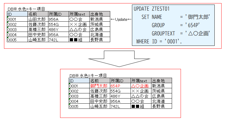 *(※構造の場合の例: UPDATE ztest01 FROM ls_ztest01. )