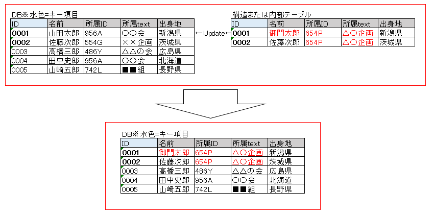 UPDATE [DBテーブル] FROM TABLE [内部テーブルID].